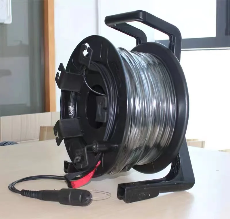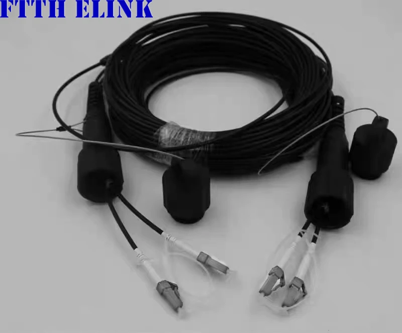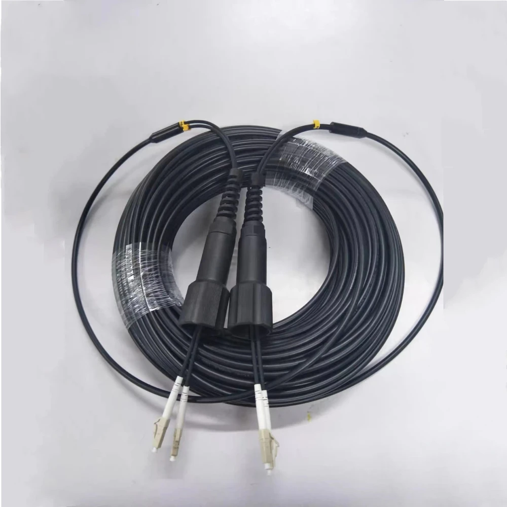 Cable de conexión de fibra blindado de TPU OM3 OM4 de 2 núcleos con tambor PCD235 2C SC LC FC ST APC Multimodo 2 fibras puente de fibra óptica para exteriores