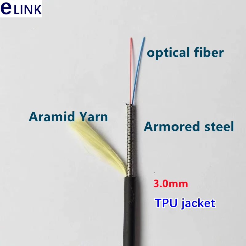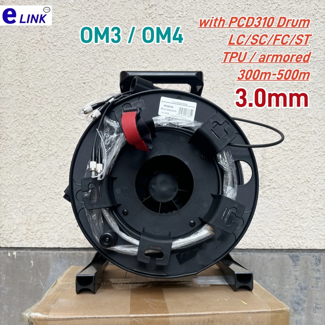 Comprar Cable de conexión de fibra blindada TPU 2 núcleos OM3 300m350m400m500m con PCD310 2C SC LC FC ST puente de fibra óptica multimodo 2 para exteriores