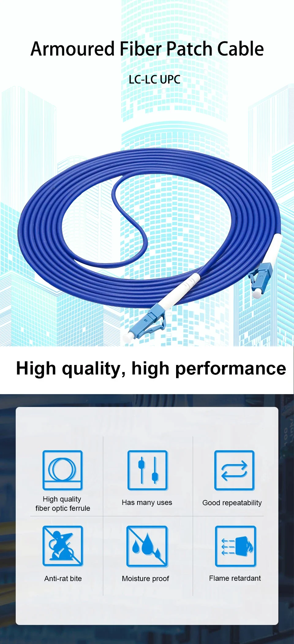 Comprar Cable de conexión de fibra LC UPC, accesorio óptico para interior y exterior, grado Industrial, modo único, Simplex, armurred, FTTH, 3,0mm