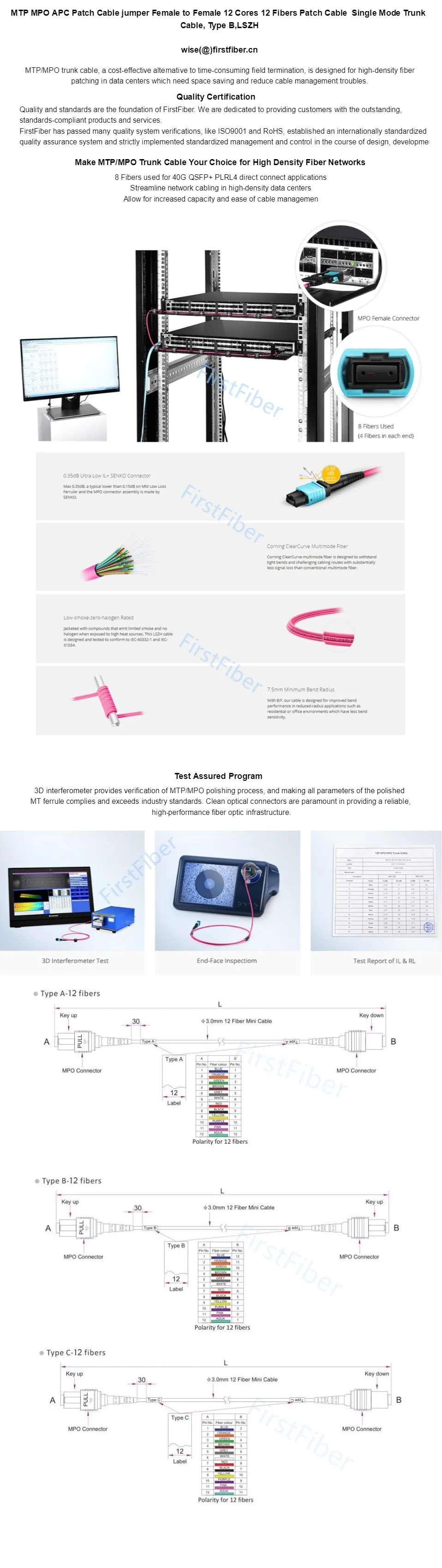 Comprar Cable de conexión de fibra MPO, accesorio OM4 UPC hembra a hembra, 12 núcleos, 12 fibras OM4 50/125, multimodo, 10m