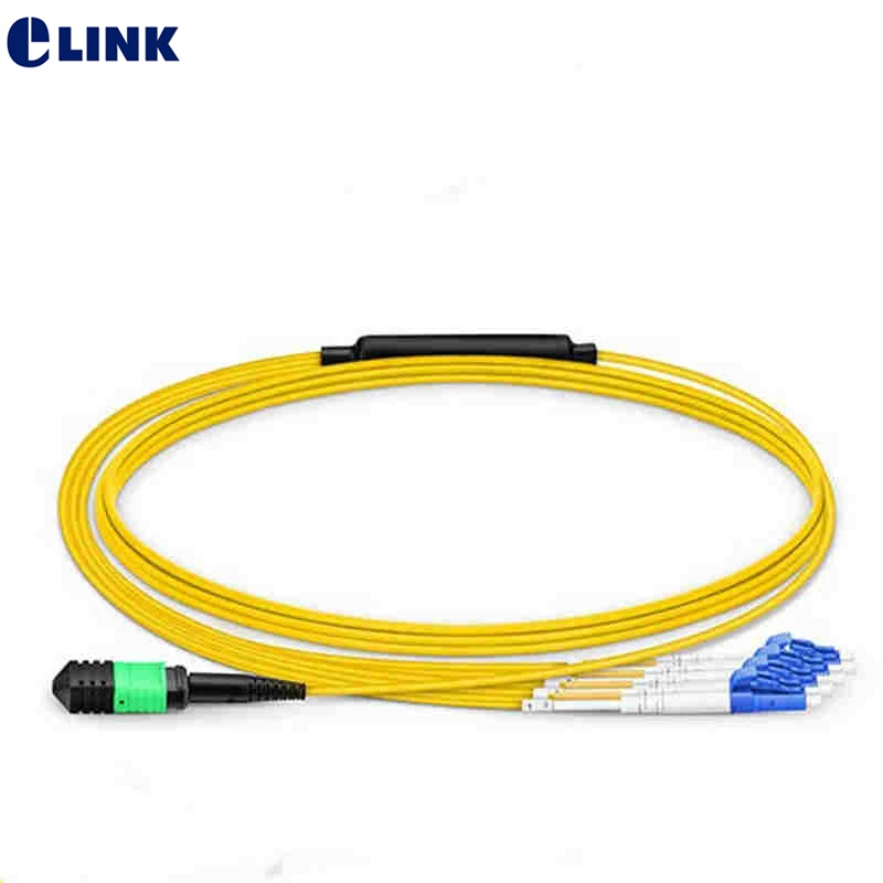 Comprar Cable de conexión de fibra MPO-LC hembra OS2 breakout 8 12 24 núcleos cable redondo color amarillo 1M 2M LSZH chaqueta tipo B 8/12/24 hebras ELINK