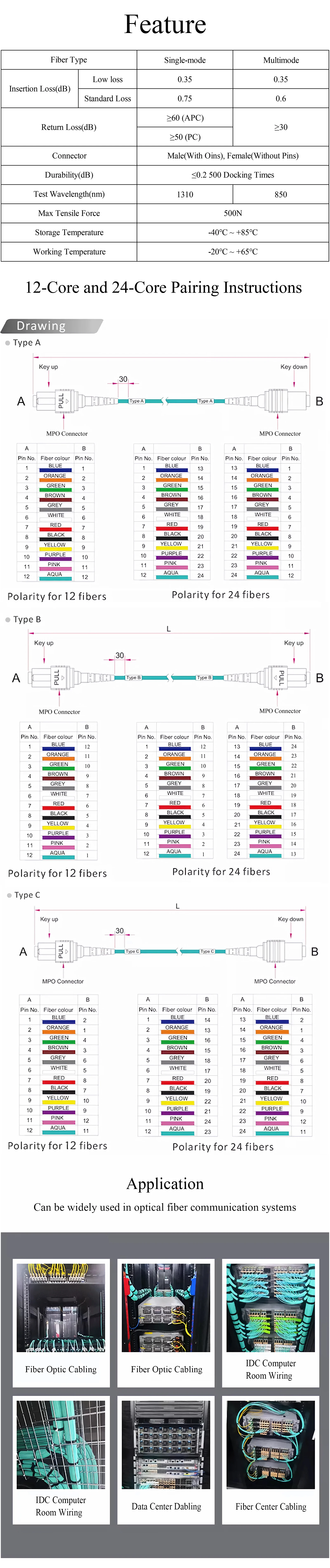Tipo: cable de fibra óptica MPO MO4