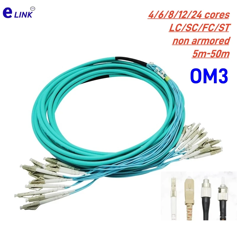 fiber patchcord OM3 bundle 12 4 6 8 24 cores LC-LC 5m-50m 20m10m5m30m jumper SC FC ST E2000 Multimode optical patch lead 4C8C12C