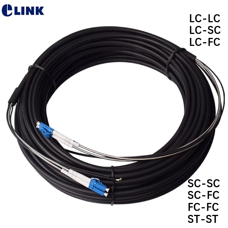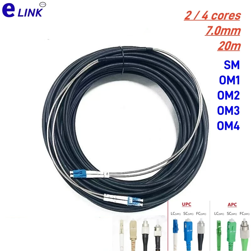 20mtr 2C 4C cable de conexión de fibra óptica CPRI para exteriores SM OM3 OM4 OM2 LC SC FC ST 2 fibras 4 núcleos cable monomodo FTTH puente ELINK