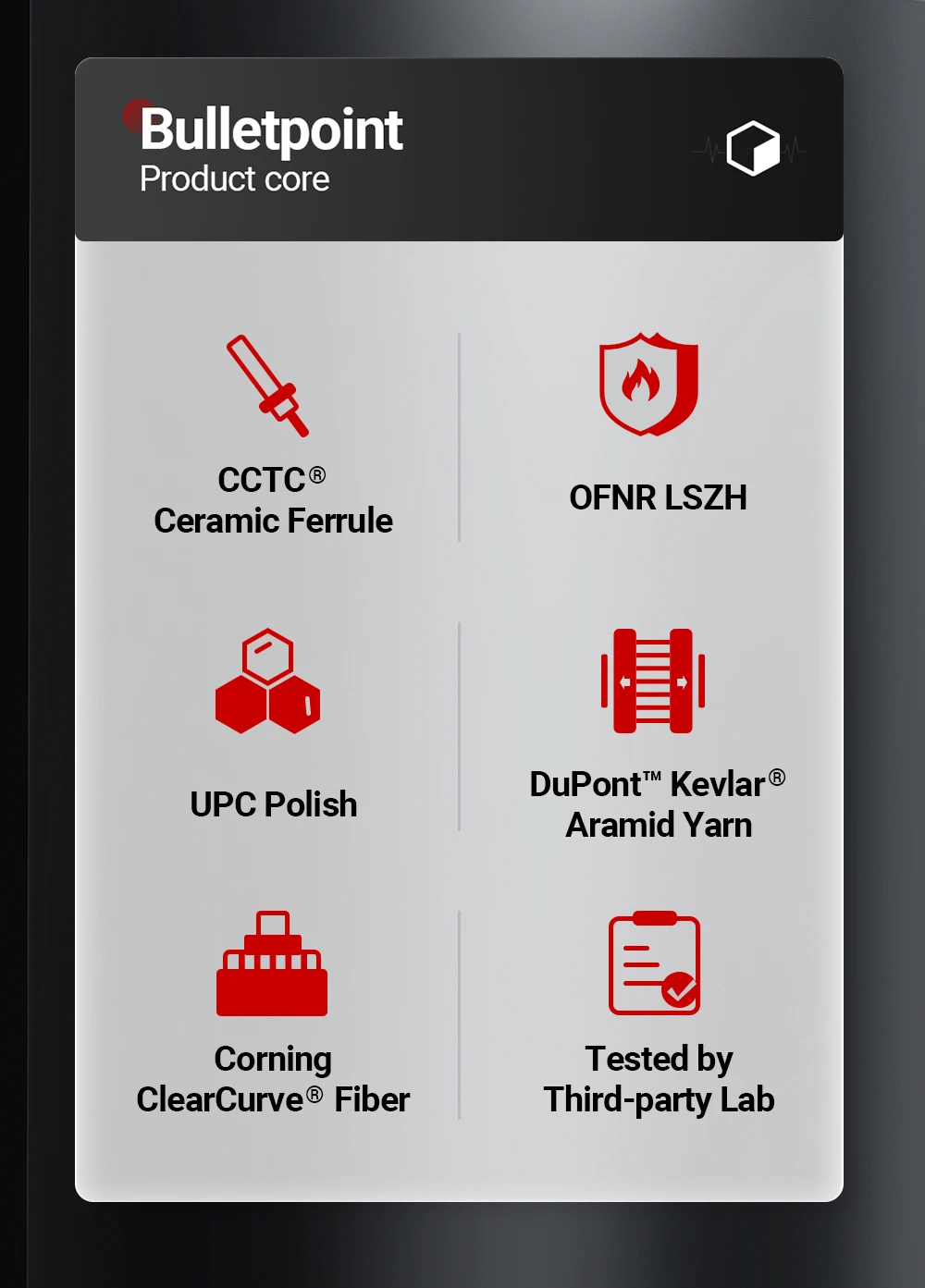 Protege el núcleo de la fibra y facilita la transmisión de señales ópticas, exhibiendo una excelente resistencia a la tracción y a la flexión.