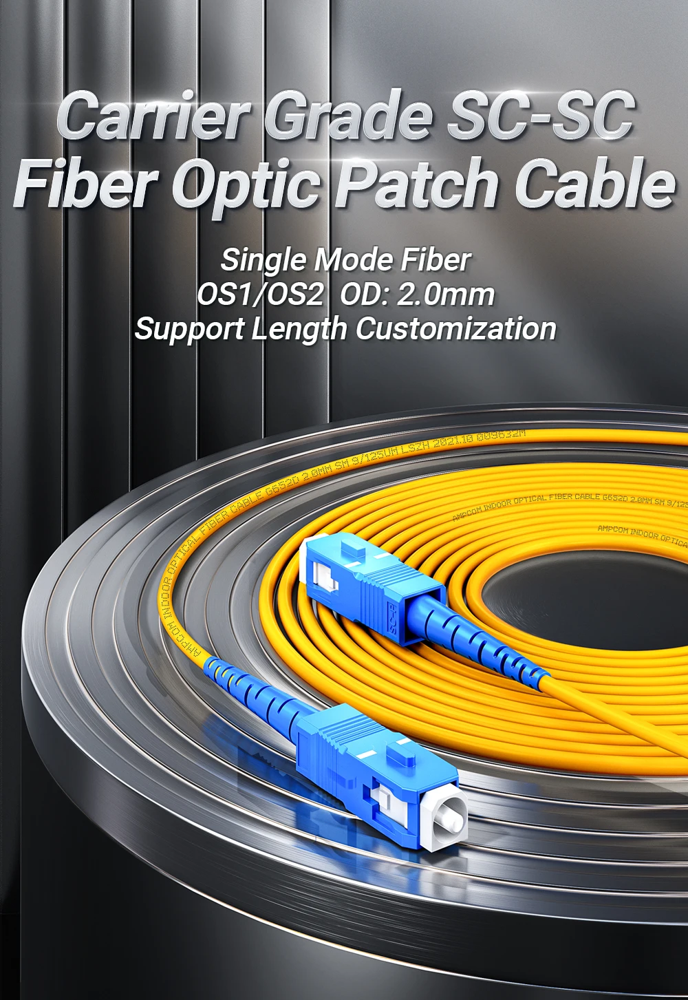 AMPCOM-Cable de conexión de fibra óptica simplex/dúplex de 9/125 μm, SMF, 2, 1, 2, 2, 2