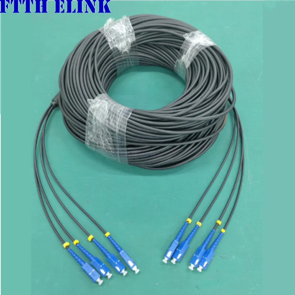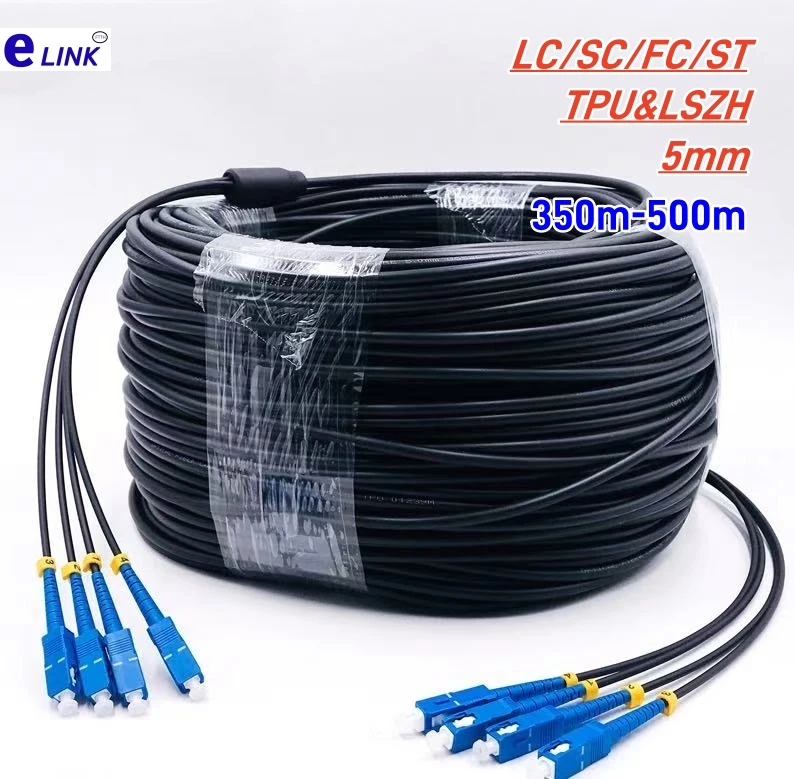 350-500m 5mm Cable de conexión de fibra óptica blindado 4C a prueba de ratios LC-LC SC-SC FC-FC 4 núcleos puente monomodo SM exterior negro 4 fibras