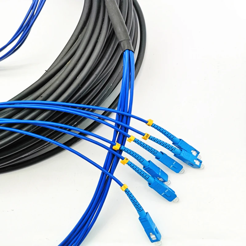 Cable de conexión de fibra óptica con cabezal LC SC FC de 100m, Cable de fibra óptica blindado, Cable de fibra óptica sin fusión para exteriores de 4 núcleos, venta al por mayor