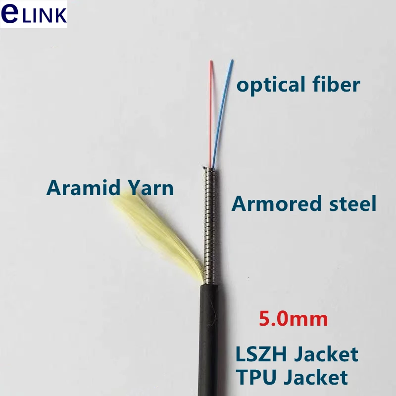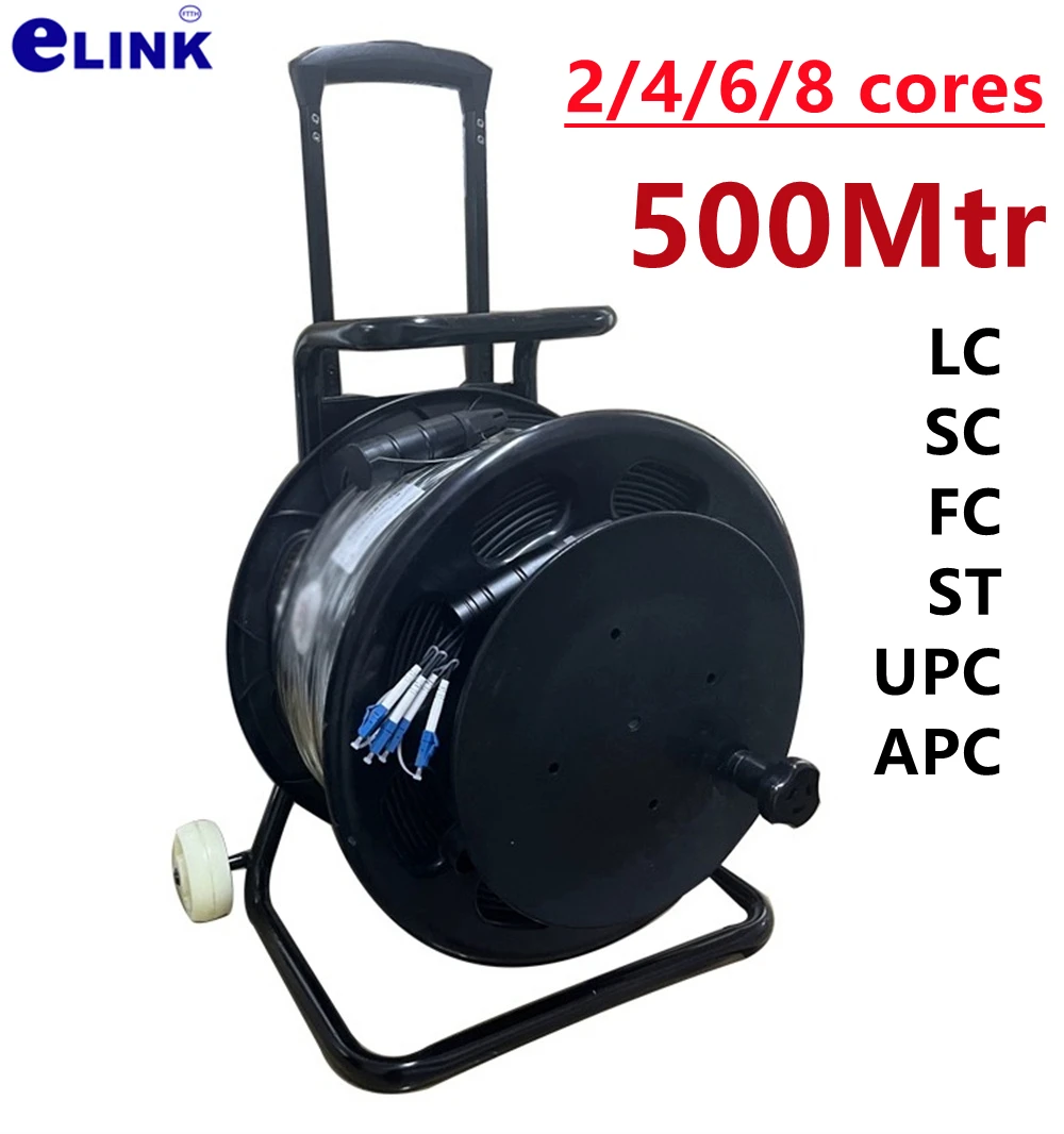 Comprar Cable de conexión de fibra óptica para exteriores, 2/4/6/8 núcleos, 500mtr, 5mm, monomodo SM, blindado, TPU, LSZH con ruedas de tambor con varilla de tracción retráctil