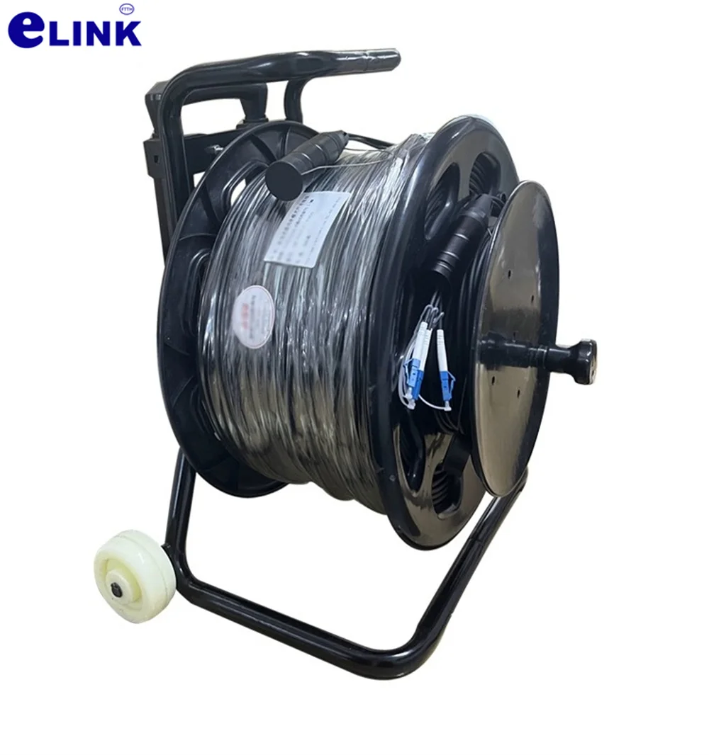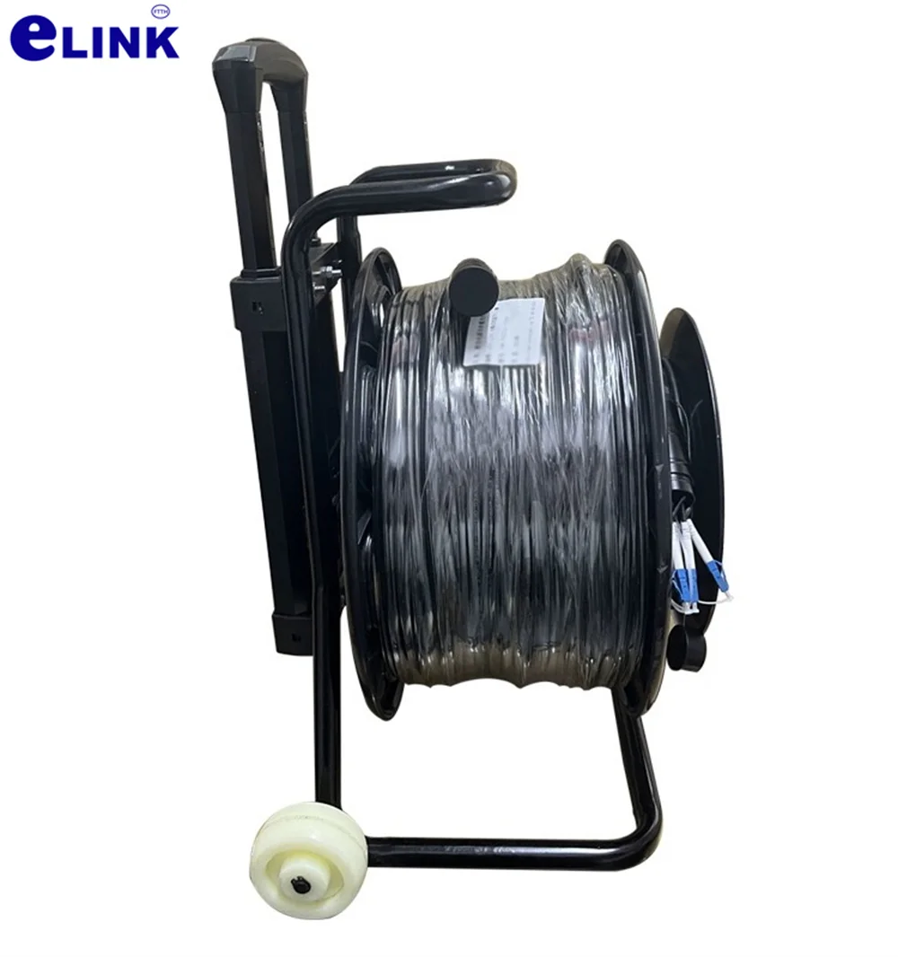 2/4/6/8 núcleos 500mtr 5mm Cable de conexión de fibra óptica para exteriores monomodo SM blindado TPU LSZH con ruedas de tambor con varilla de tracción retráctil