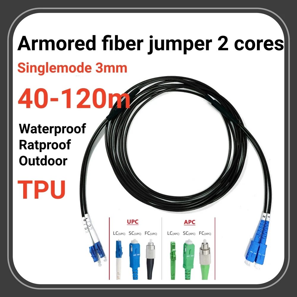 40m50m60m70m80m100m120m Armored 2 cores Fiber optic Patchcord 3mm TPU waterproof LC FC SC ST APC LCAPC Singlemode jumper Outdoor