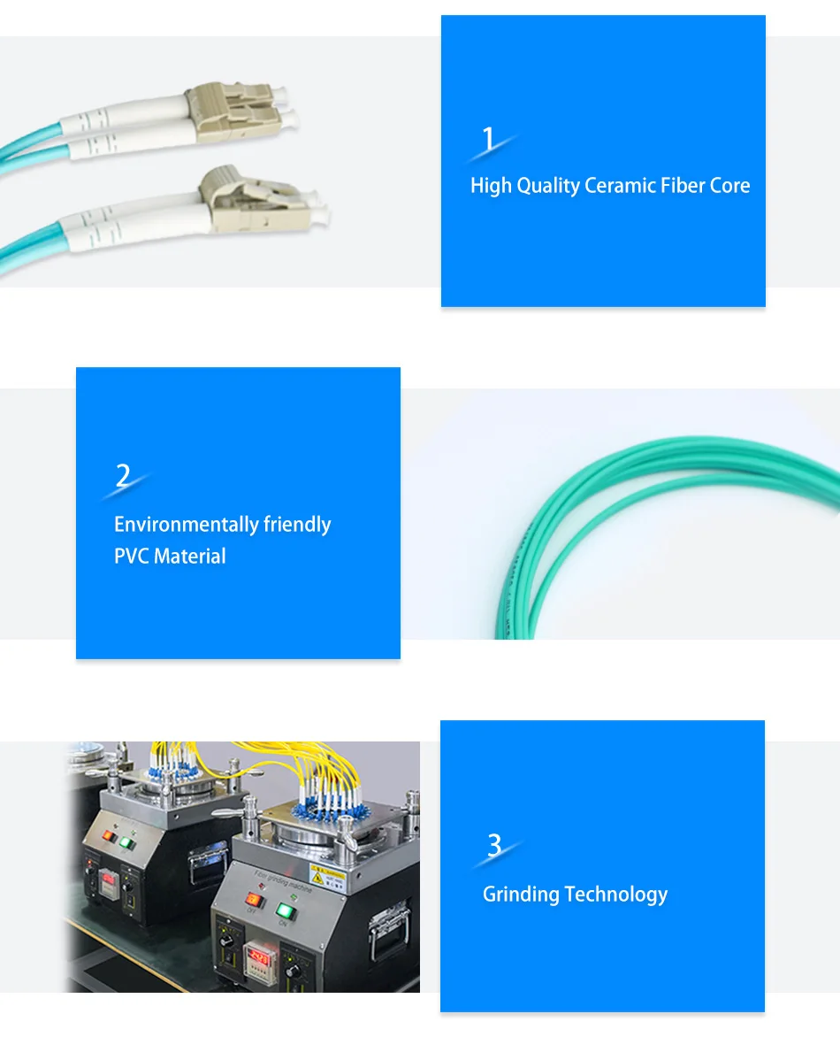 Cable de conexión de fibra 2 OM3 multimodo dúplex 50/125um UPC pulido para cable de red 10G1M, 3m,5m,10m,15M, 20m,30m ~ 100M Cable de conexión de fibra óptica