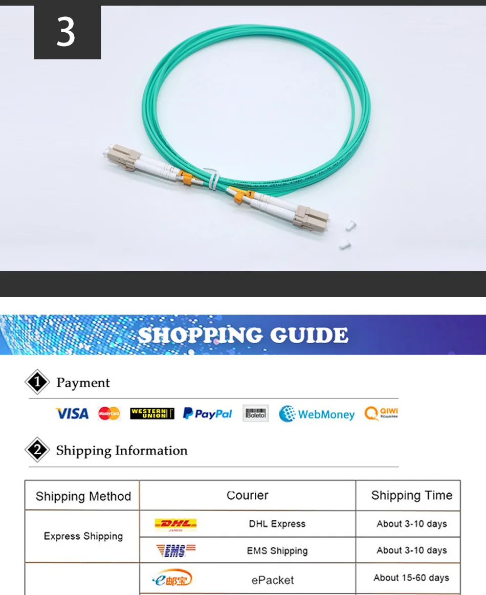 Este cable de fibra óptica multimodo 50/125 OM3 es ideal para conectar 10G SR, 10G LRM, transceptores SFP +, etc. para conexiones Ethernet 10G/40G/100G y es la especificación de fibra preferida para conexiones Ethernet 10G.