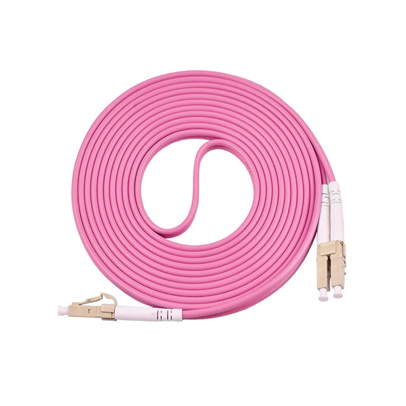 El Cable de conexión de fibra dúplex OM4 es un cable de fibra óptica cubierto en cada extremo con conectores que le permiten conectarse rápida y convenientemente a CATV, un interruptor Óptico u otro equipo de telecomunicaciones. Con una gruesa capa de protección, se utiliza para conectar el transmisor óptico, el receptor y la caja de terminales. Esto se conoce como "cableado de estilo de interconexión".CaracterísticaBaja pérdida de inserción
