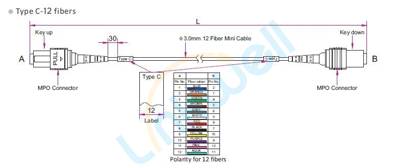 1 metros 12 núcleos OM4 MPO fibra óptica Patch cord 50/125 multimodo APC UPC Jumper hembra A hembra tipo A tipo B Tipo C OM4