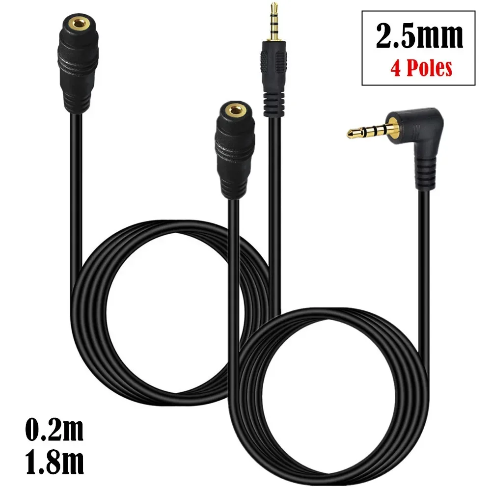 Cable auxiliar de 2,5 mm, 2,5 mm a 2,5 mm, doble ángulo macho a hembra, TRRS estéreo, conector para auriculares, conector chapado en oro, cable de enchufe, 4 polos.