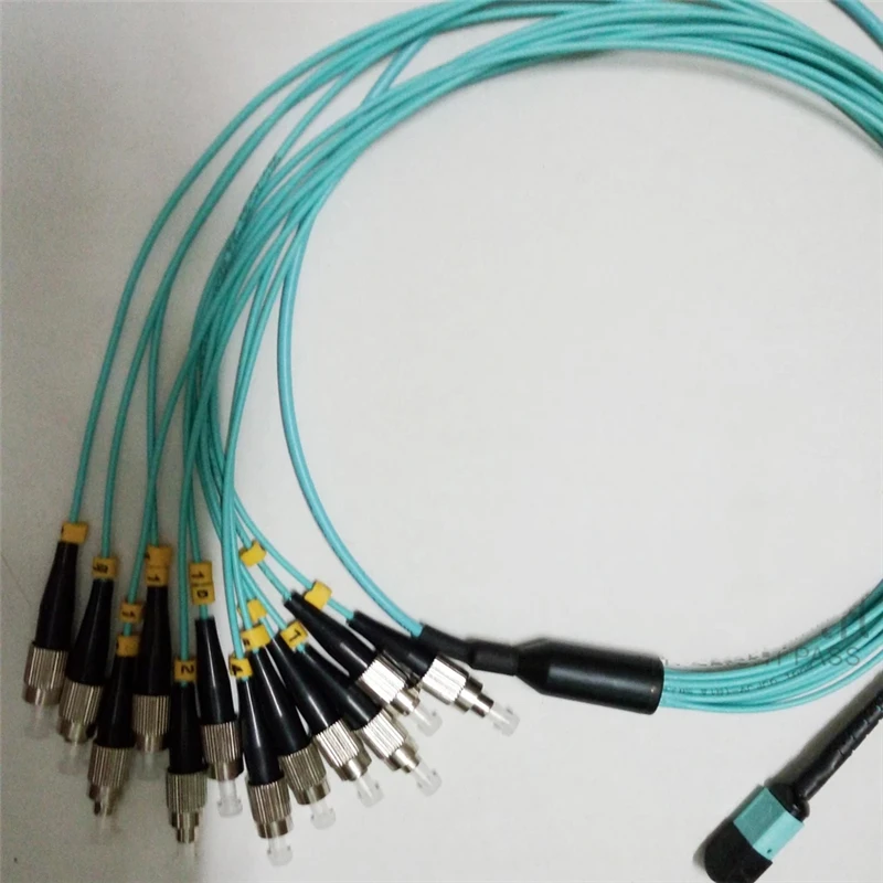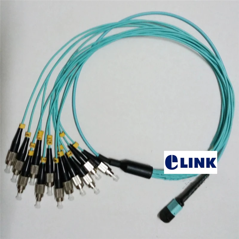 Comprar Cable de conexión MPO 12 núcleos hembra MTP-12FC OM3 1m 3m 5m ruptura de fibra MTP tipo B 12 hebras OM3 ftth puente parche óptico plomo ELINK