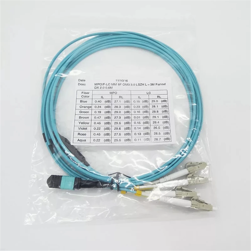 Parchecord MPO de 8 núcleos hembra MTP-4DLC 6DLC OM4 1 3 5 10M ruptura de fibra MTP Tipo B 8 núcleos OM4 ftth puente parche óptico cable ELINK