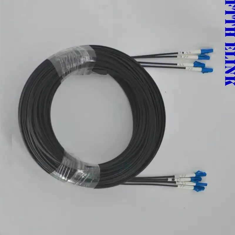 20-100M LC/UPC 4 núcleos Cable de conexión óptico de caída 3 aceros 2C al aire libre monomodo FTTH Jumper de fibra óptica de caída G652D Cable de conexión
