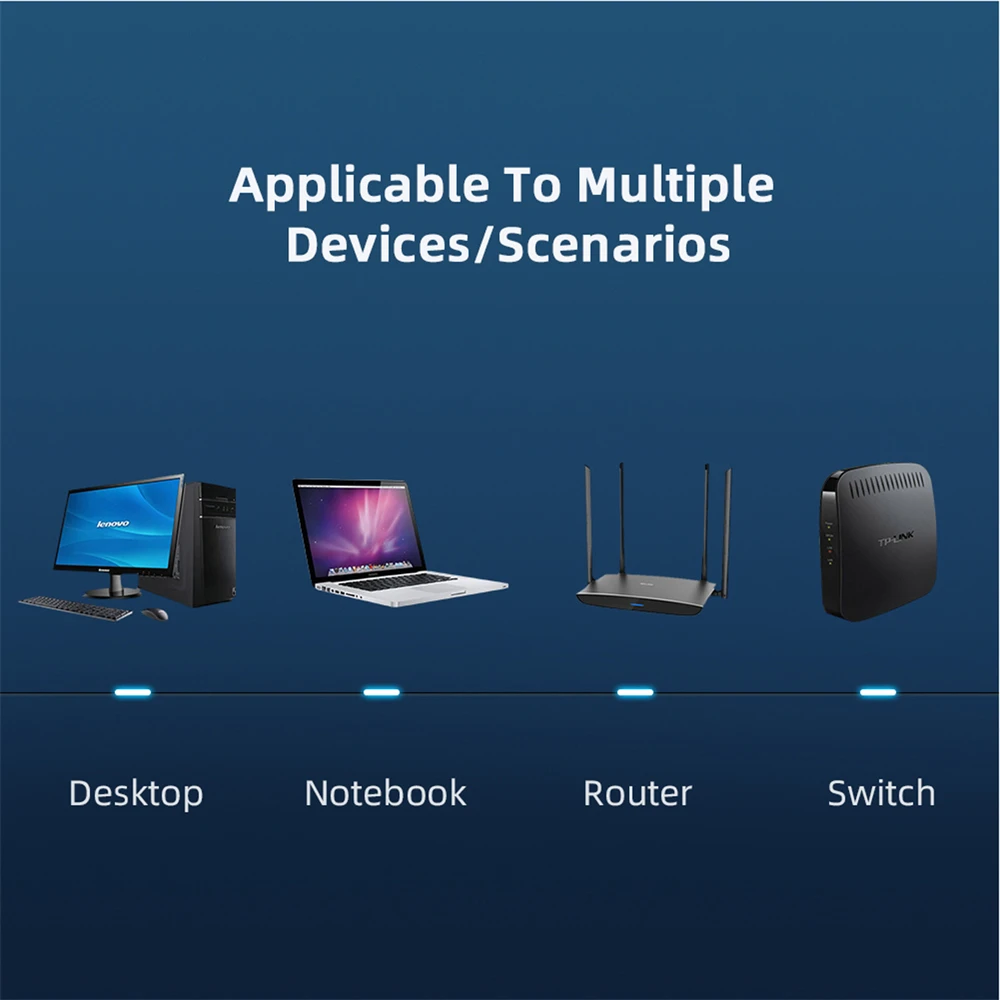 Compatible con todas las aplicaciones CAT5 CAT5e CAT6 CAT6a Cat7. Compatible con 10BASE-T, 100BASE-TX, 1000BASE-T y 10GBASE-T. Adaptadores de red, computadora de escritorio, computadora portátil, enrutador, módem, conmutador, concentrador, DSL, X-Box, PS2, PS3,PS4, panel de conexión y otras aplicaciones de redes de alto rendimiento.