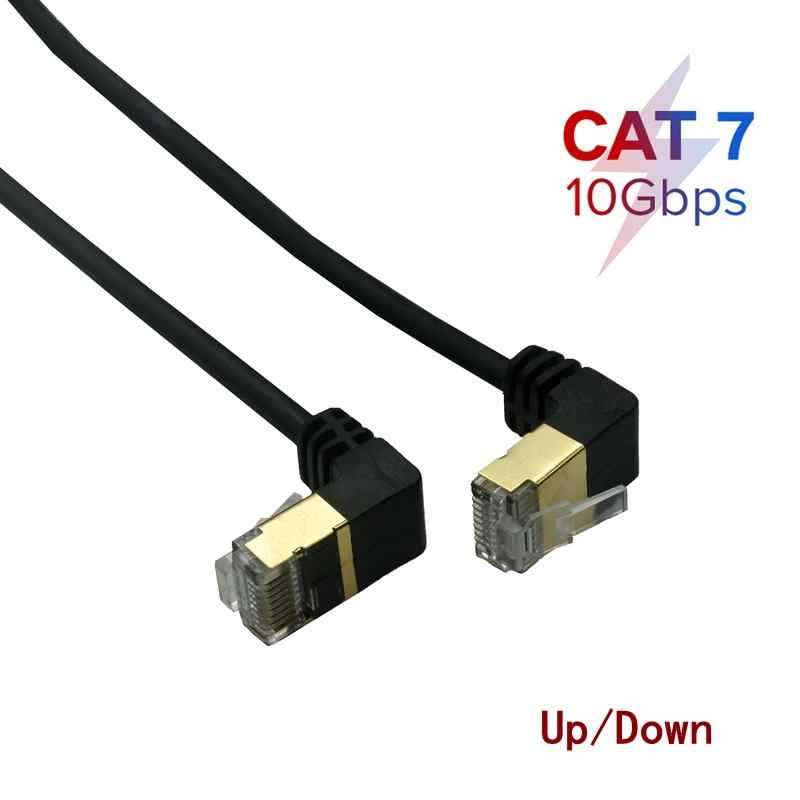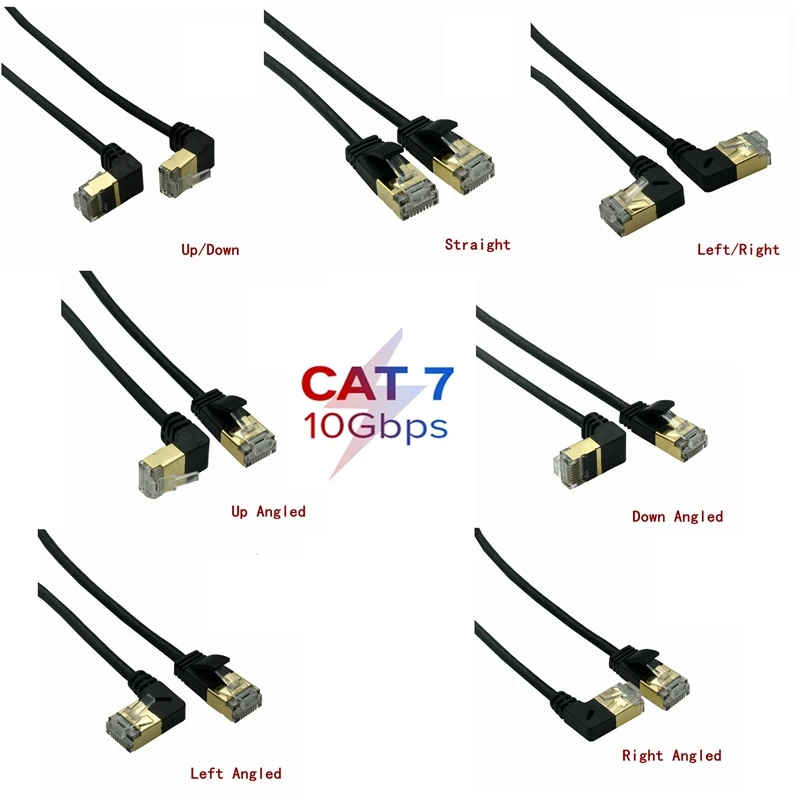 Comprar Cable de conexión de red ultradelgado Cat7 Ethernet RJ45, Cable de conexión de red UTP de ángulo recto, Cables Lan Cat6a de 90 grados para enrutador de portátil, Cable de TV BOX