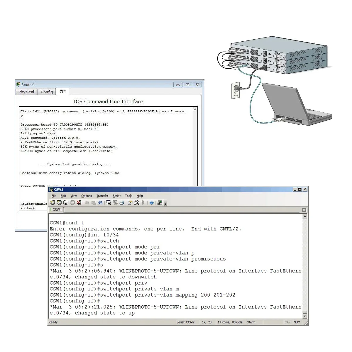 Variedad de Enrutadores, Interruptores, firewalls y control WiFi con consola
