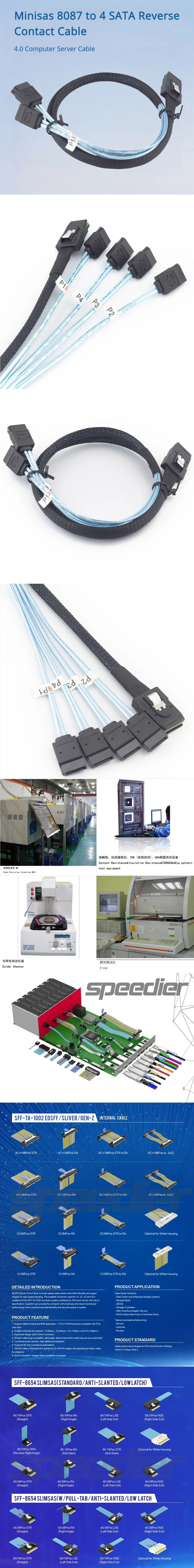 Cable de contacto inverso Minisas 8087 a 4 SATA - Cable de servidor de computadora 4.0 sin metralla para un rendimiento mejorado