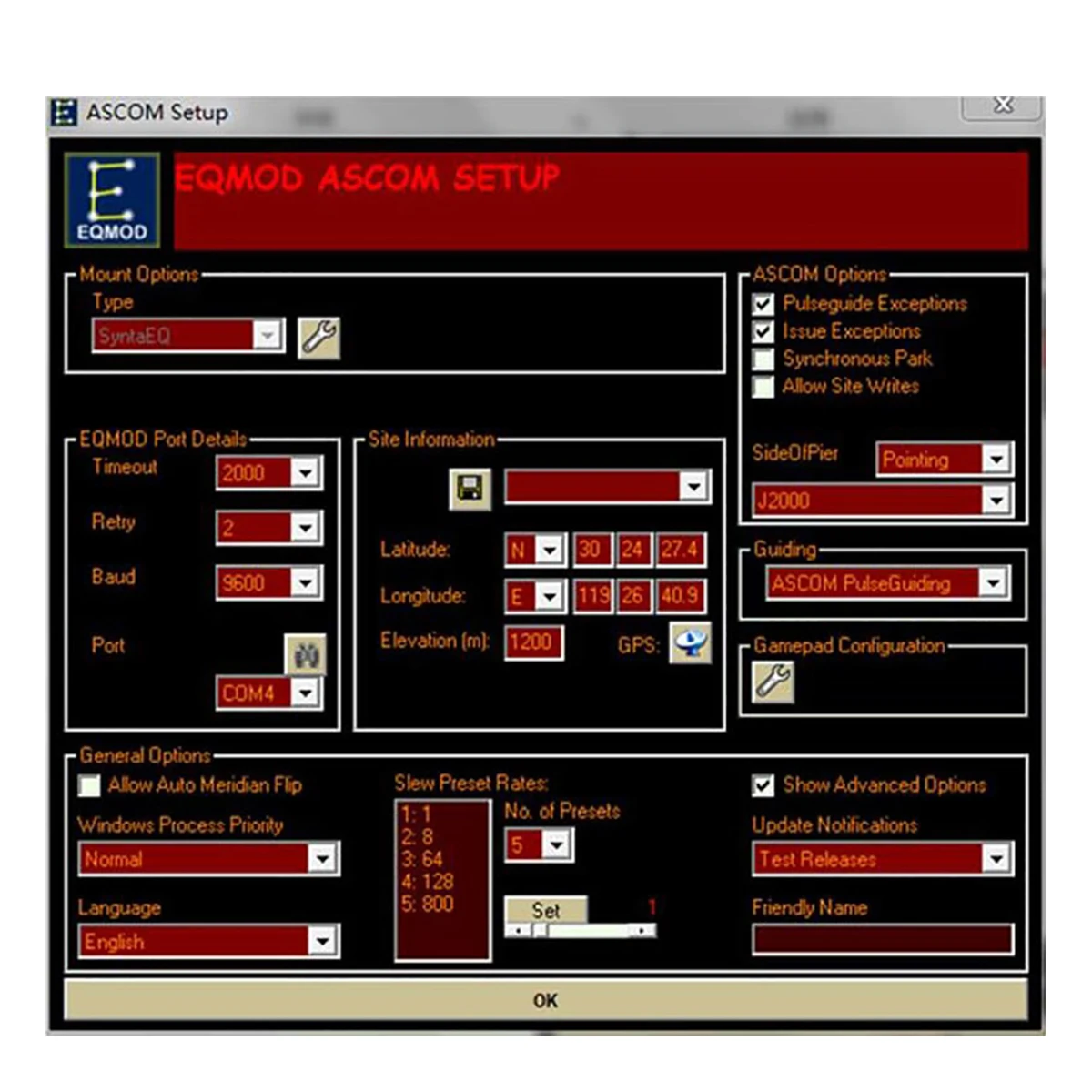 No somos responsables del software EQMOD ASCOM. Para el software de terceros, vaya al sitio web oficial para descargarlo