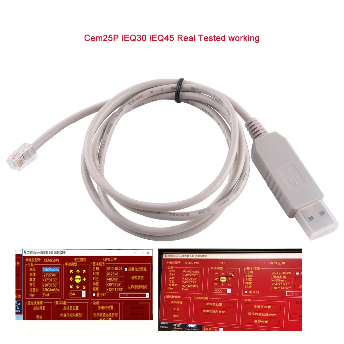 Comprar Cable de Control de Serie USB a RJ9 4P4C RS232 para Ioptron telescopio ecuatorial IEQ30 Cem25 CEM60 IEQ45 Smart EQ Pro Skyx