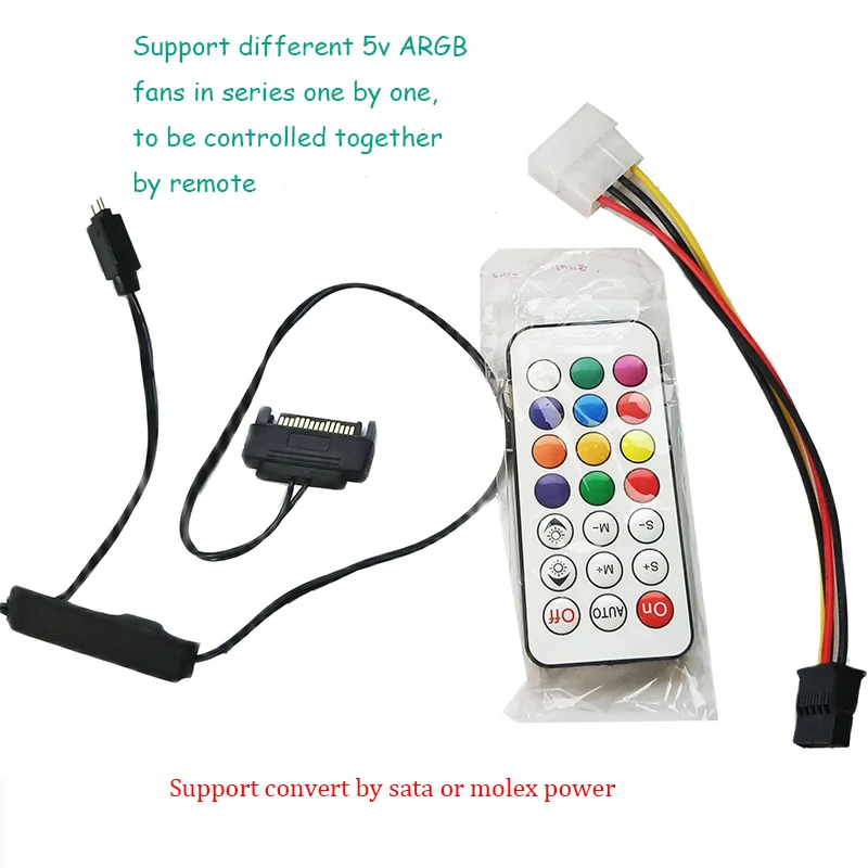 Comprar Cable controlador aura RGB de 5v, convertidor por sata o molex, sincronización IDE de 4 pines con soporte remoto, ventiladores en serie, adaptador de powersupply