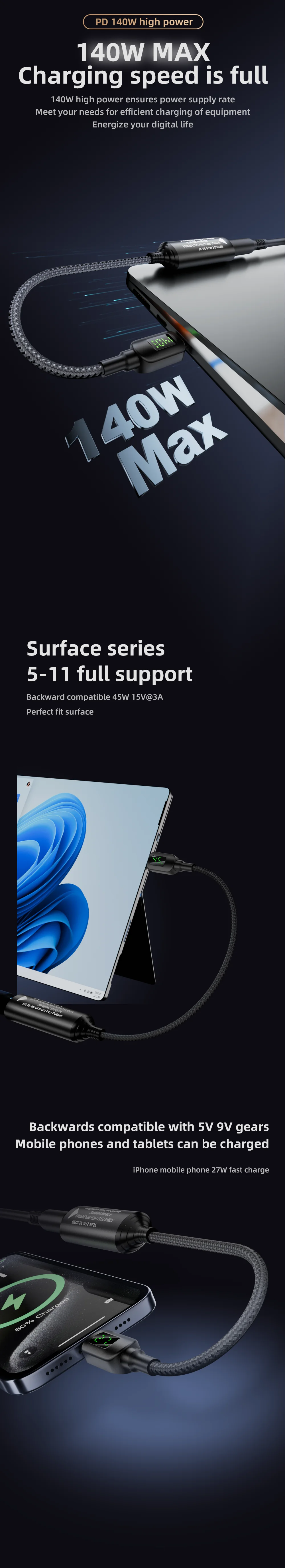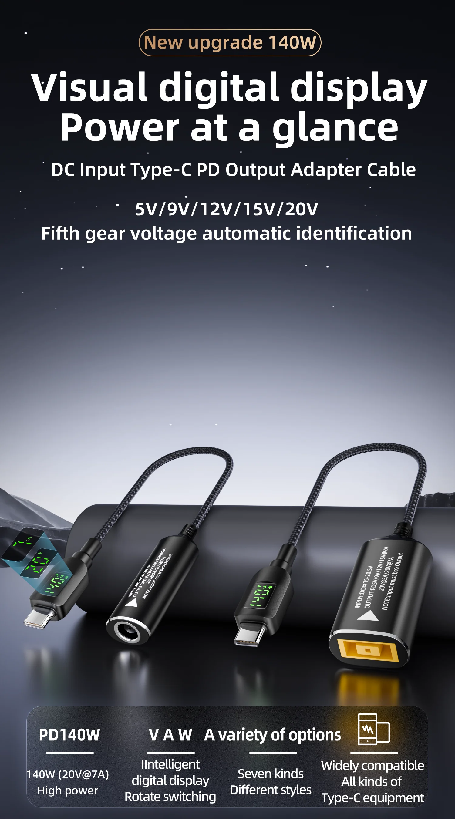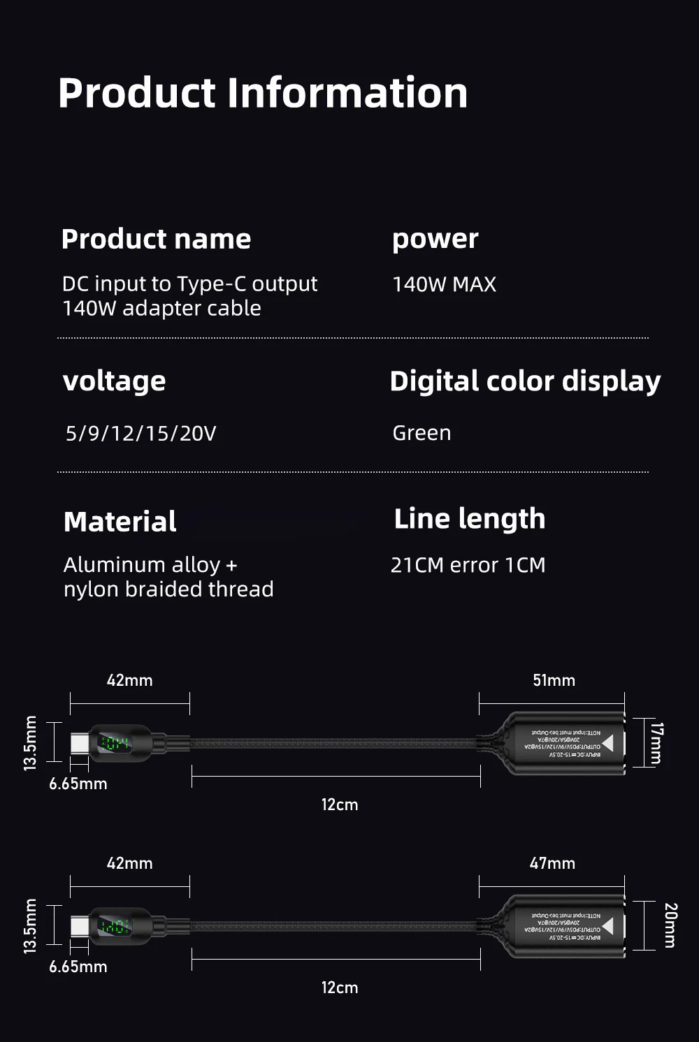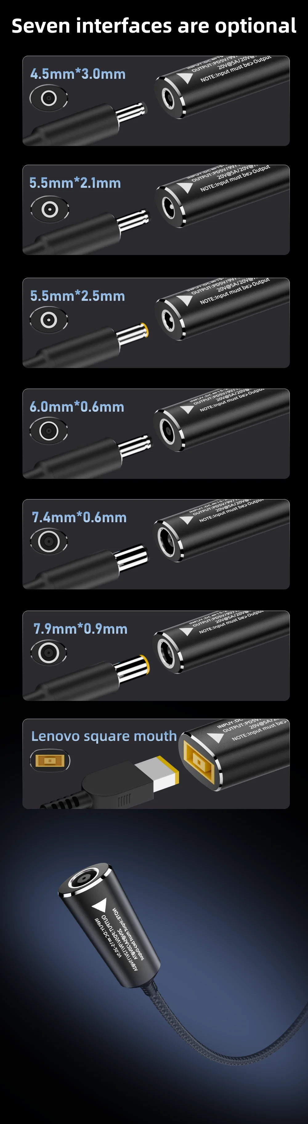 2. Elija el cargador de computadora portátil correcto según las necesidades de su dispositivo tipo C. La potencia de entrada debe ser ≥ la potencia de salida. Por ejemplo, el cargador de computadora portátil es de 19 V 3,42 A y 65 W, luego la salida tipo c pd es de 65 W como máximo, no de 100 W. Si el cargador hembra de la computadora portátil es de 5 V a 2 A/9 V a 2 A/12 V a 2 A/15 V a 2 A/20 V a 7 A, la salida es de 140 W como máximo.