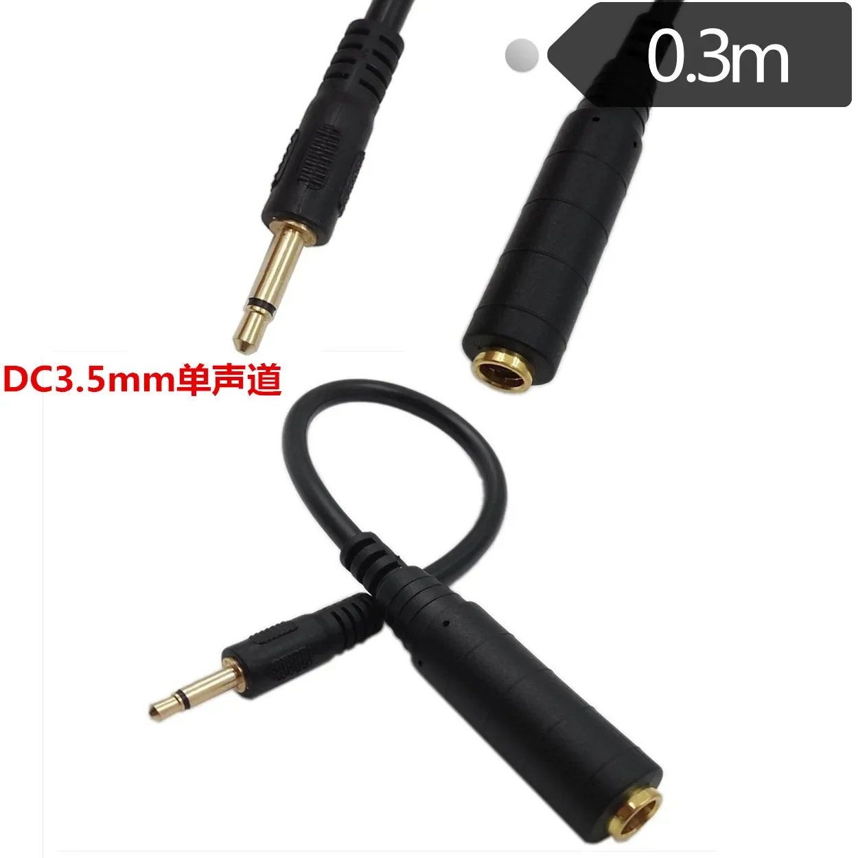 Cable adaptador de audio estéreo chapado en oro de 6,35 hembra a 3,5 macho de 0,3 m