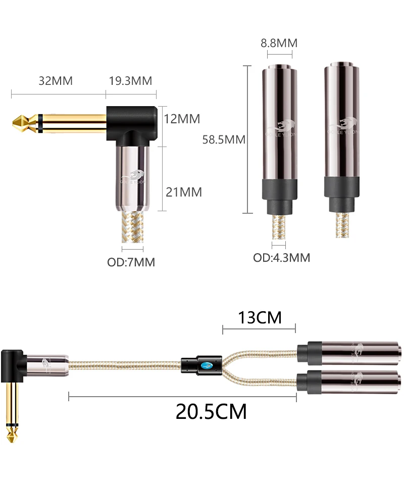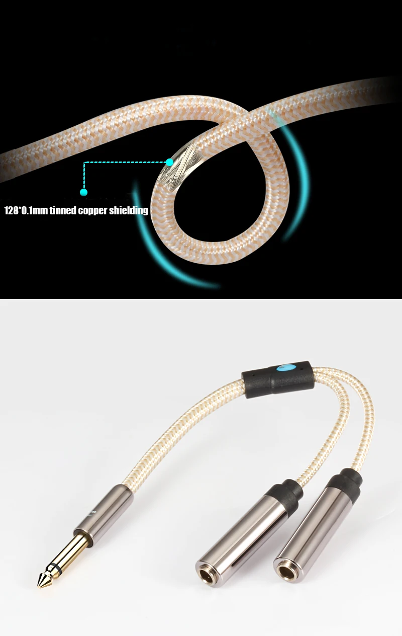 Comprar Cable de conversión Hifi de 25cm, MONO de 6,35mm a hembra Dual de 6,35mm para micrófono de 1/4 pulgadas, Cable divisor TS Jack, blindaje OFC