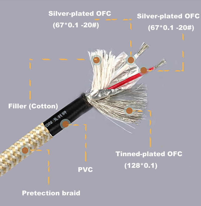 Conductor: cobre plateado libre de oxígeno (67X0.1, 20 #)