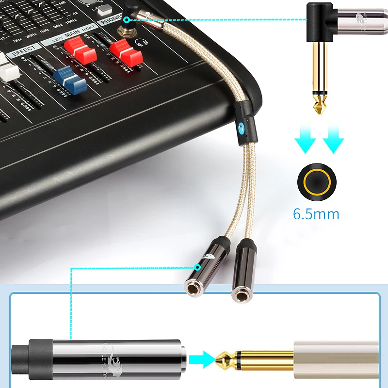 Comprar Cable de conversión Hifi de 25cm, MONO de 6,35mm a hembra Dual de 6,35mm para micrófono de 1/4 pulgadas, Cable divisor TS Jack, blindaje OFC