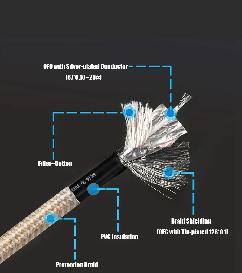 Conductor: cobre plateado libre de oxígeno (67X0.1, 20 #)