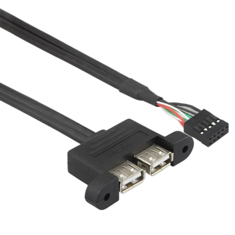 Cable de conversión dual USB a 9 pines de 2,54 mm con orificio para tornillo Adaptador de enchufe hembra a hembra Cable de protección Panel de caja de PC Placa base Extienda el cable USB