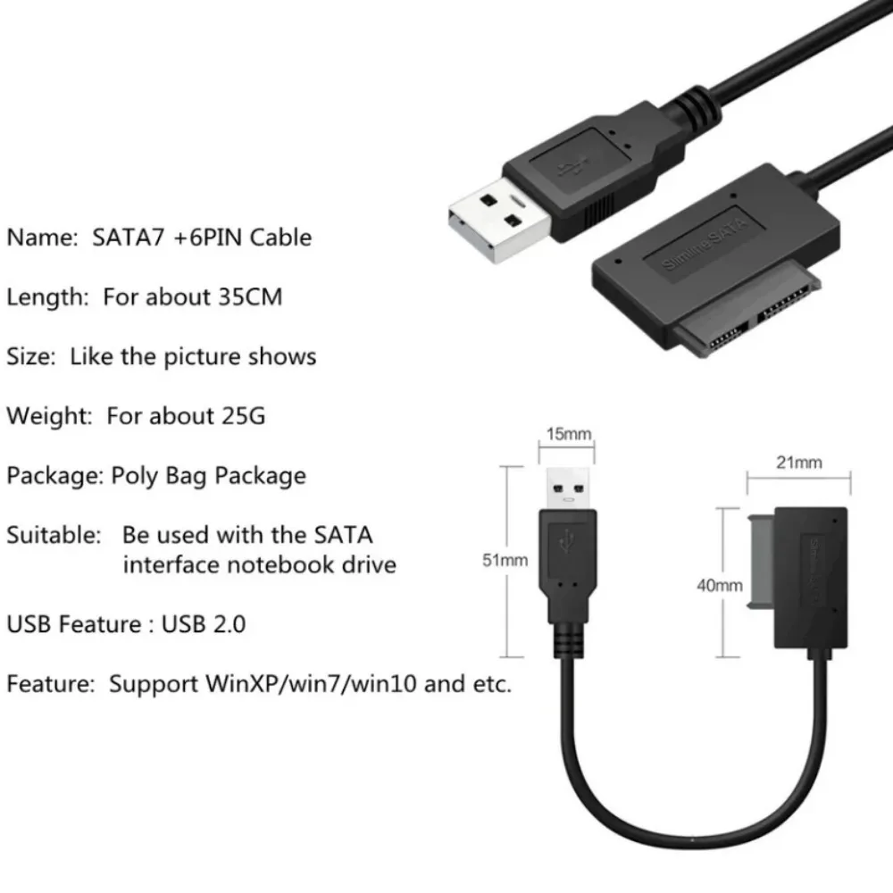 Comprar Cable convertidor adaptador SATA USB 2,0 a Mini Sata II 7 + 6 De 13 Pines, estilo estable para portátil, CD/DVD ROM, unidad delgada HDD