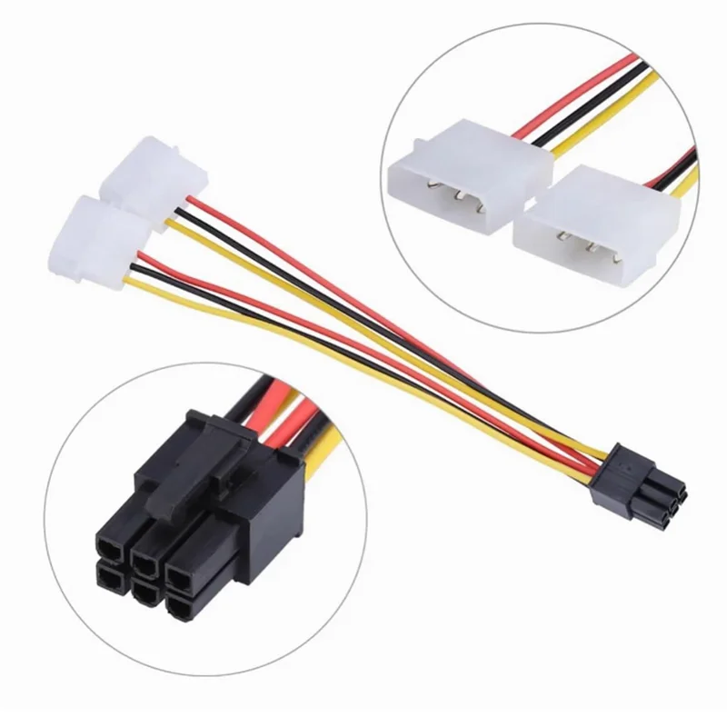 Comprar Cable convertidor adaptador de tarjeta gráfica IDE Dual de 4 pines a ATX de 6 pines EPS 12V, Cable de alimentación hembra de 2 IDE Dual de 4 pines IDE macho a 6 pines