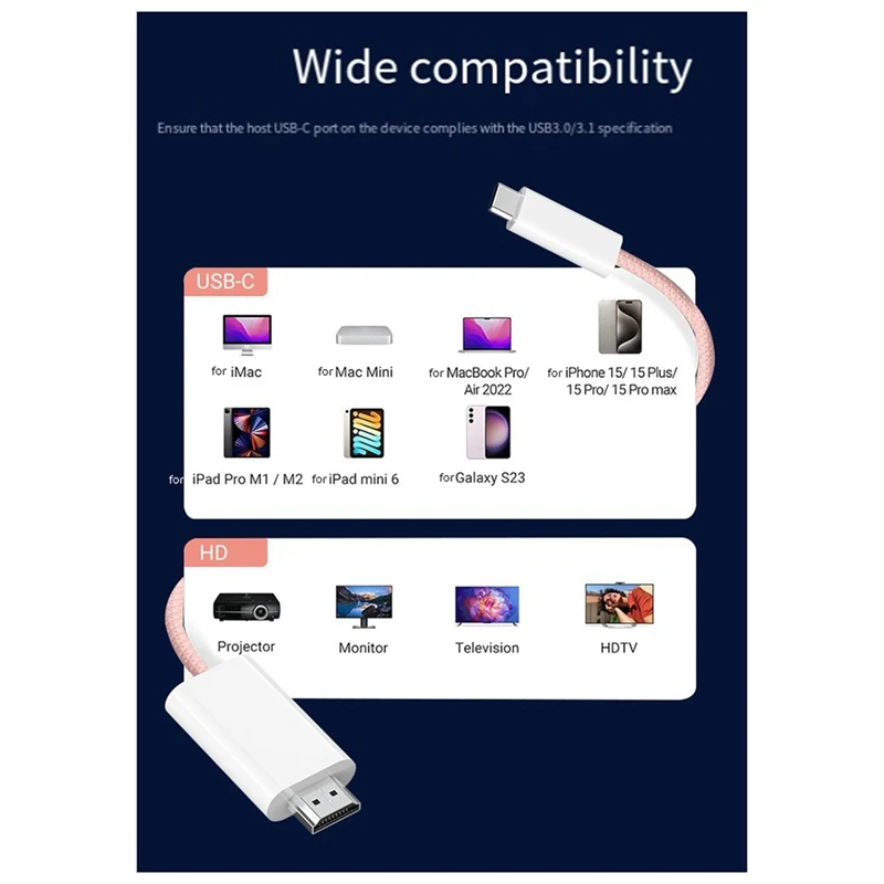 Perfecto para conectar teléfonos y computadoras a pantallas y proyectores externos para una resolución 4K nítida y clara a 60 Hz.