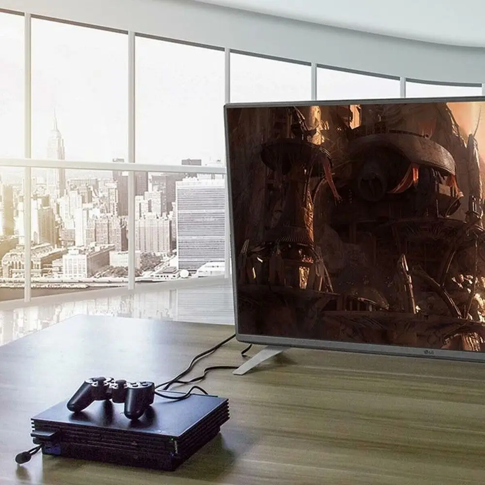 Convertidor de PS1 / PS2, convierte video/audio en PS1 / PS2 a HDTV o monitor, proyector y más. Todos los modos de visualización PS1 / PS2 (480i / 480p / 576i) son compatibles. Salida de vídeo y audio sincronizado en formato completamente digital sin pérdida de transmisión. Las imágenes en vivo se transmiten en vivo en videojuegos sin demora. Plug and play, no es necesario instalar controladores. Especificación: Material: plástico PVC Longitud del cable: 1m / 3.3ft Interfaz de entrada: PS1 / PS2 Interfaz de salida: Especificación de entrada: 480i / 480p / 576i Resolución de salida: 720p (La resolución real está relacionada con la señal de entrada) Audio de salida: Sí Fuente de alimentación: 5V 1A El paquete incluye: 1 convertidor de PS1 / PS2 a 1 USB Cable
