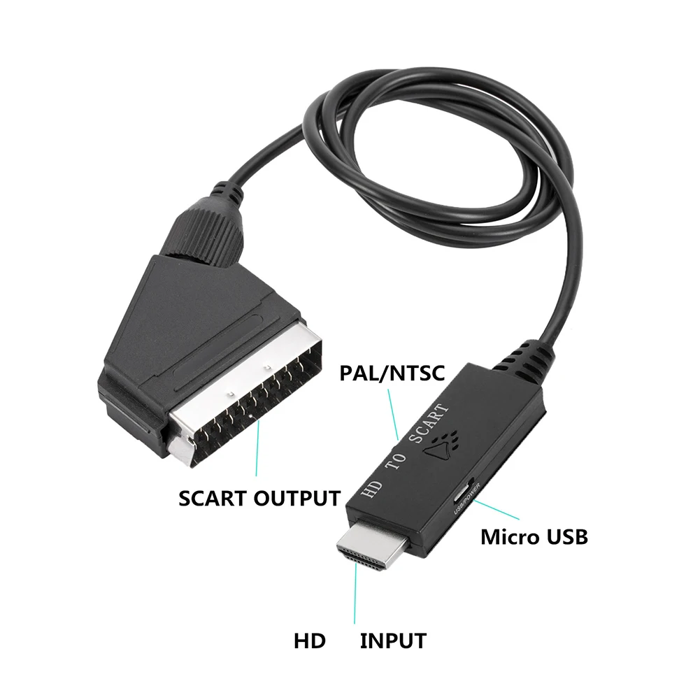 Comprar Cable convertidor Compatible con HDMI para Scart, adaptador de Audio de salida de vídeo para grabadora de vídeo, adaptador Plug and Play para ordenador
