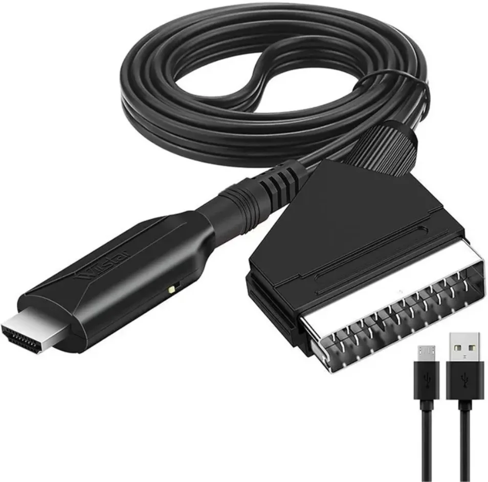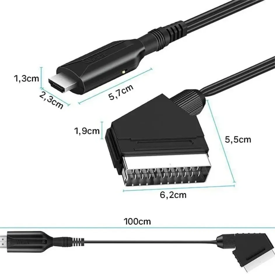 2. Salida: Puerto Compatible con HDMI, Entrada: Puerto SCART Convierte la entrada SCART analógica en salida compatible con HDMI a 720P/1080P (60Hz) y proporciona procesamiento de señal avanzado con alta precisión y resolución, brindándole una experiencia HD más realista.Nota: Limpie el contacto de su televisor.Si el contacto se oxida, esto afectará el uso normal del cable Scart.