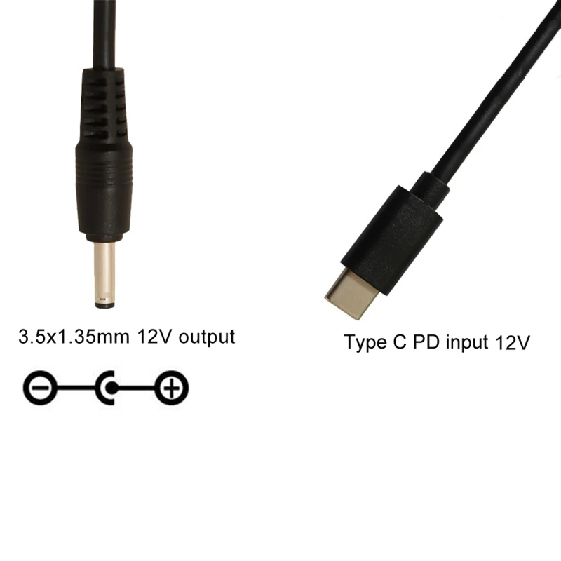 Type-C/USB-C PD to 12V 4.0x1.7mm /3.5x1.35mm / 5.5x2.5mm Converter Cord for CCTV Camera Router Multipurpose Type-C Power Cord