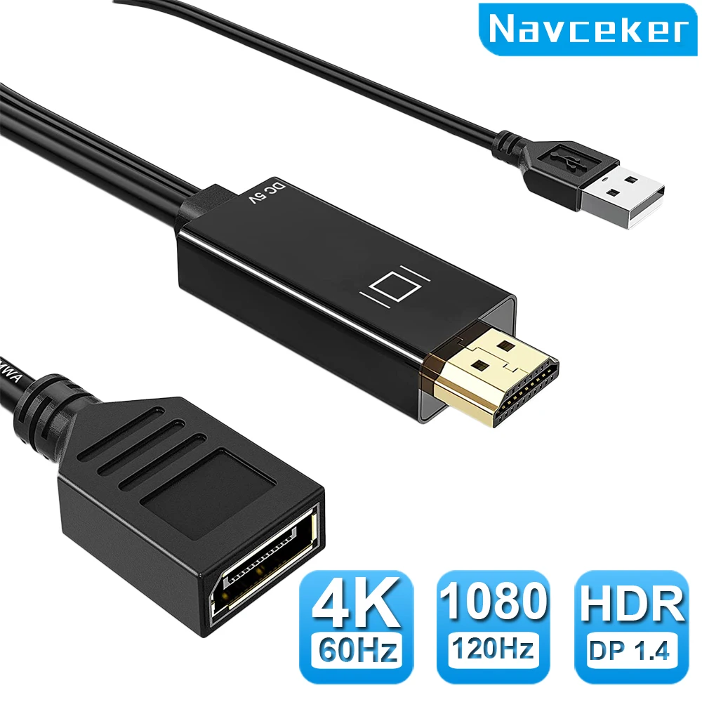 Cable Navceker HDMI a Displayport macho a hembra 4K @ 60Hz 1080 @ 120Hz, 1, 2, 2, 3El NavcekerPuerto de visualización HDMICable - Black está diseñado para conectar sistemas informáticos equipados con HDMI a monitores equipados con Displayport, proporcionando una calidad de vídeo óptima de hasta 4K @ 60Hz(3840*2160 @ 60Hz) Gráficos HDTV o PC. Es una solución rentable para permitir que su ordenador HDMI/PS5/PS4 funcione con la pantalla Displayport para negocios, entretenimiento en el hogar, salas de conferencias y más.