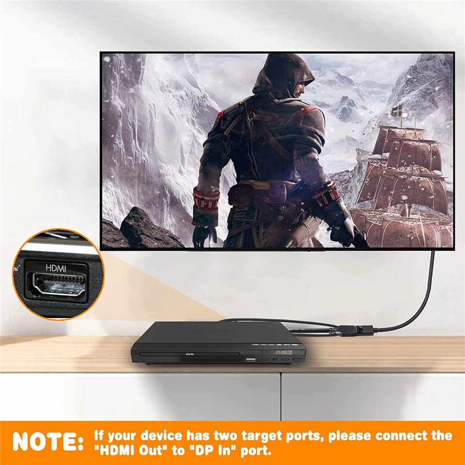 · Adaptador HDMI a DisplayPort: el cable HDMI a DisplayPort transmite señal de audio y video de alta definición desde sus dispositivos HDMI al monitor/pantalla DisplayPort para transmisión de video o juegos. Nota: Este NO es un adaptador bidireccional. NO lo use para la conversión de Displayport a HDMI.
