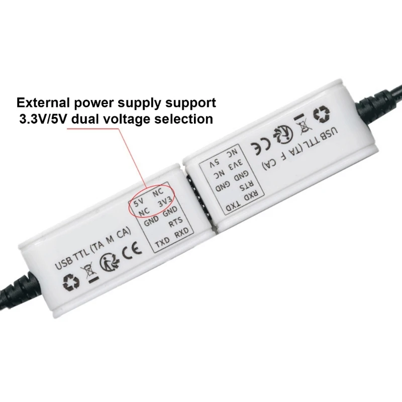 El pequeño diseño de este adaptador lo hace altamente portátil, mientras que el soporte de doble voltaje (3,3 V/5V) y la compatibilidad de nivel TTL de 5V mejora su versatilidad para diversas aplicaciones electrónicas.
