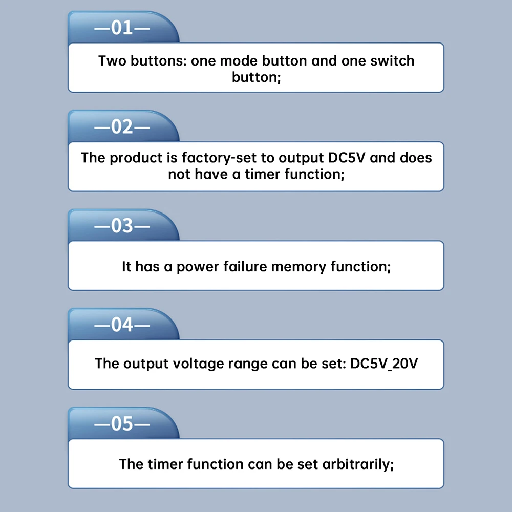 3.Función de memoria de apagado: guarda automáticamente la configuración y reanuda la operación instantáneamente después de la restauración de energía.