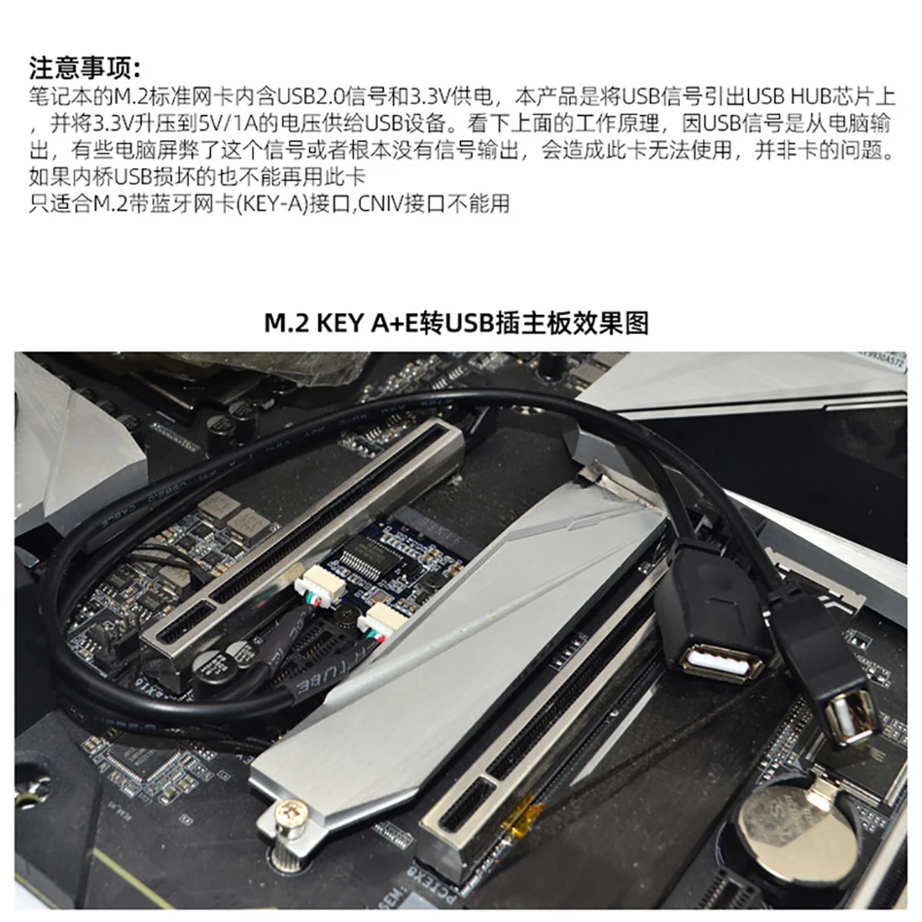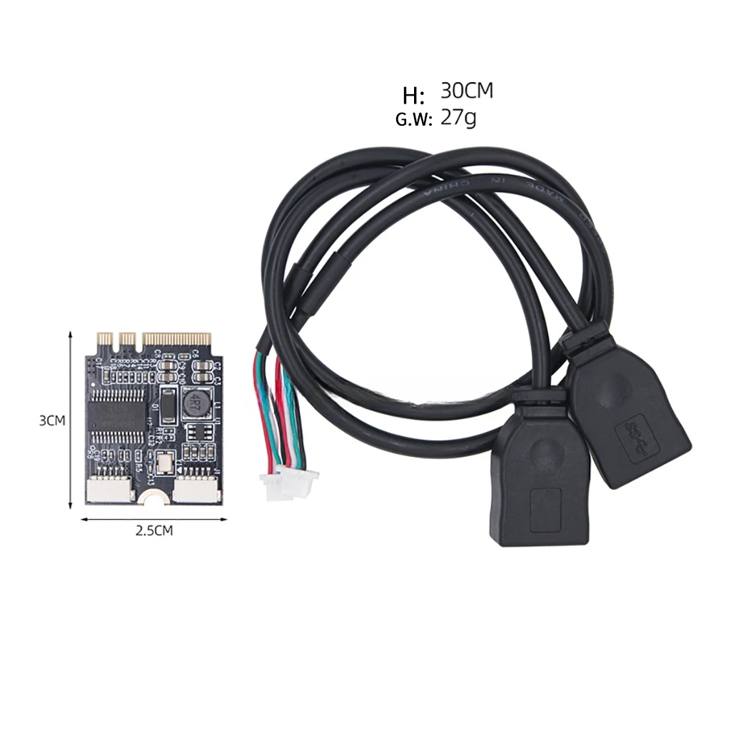 M.2 KEY A + E a 2 puertos USB2.0 Cable convertidor de tarjeta de expansión M2 WIFI a 5 pines Dual USB 2,0 Adaptador de cable M.2 a tarjeta elevadora USB