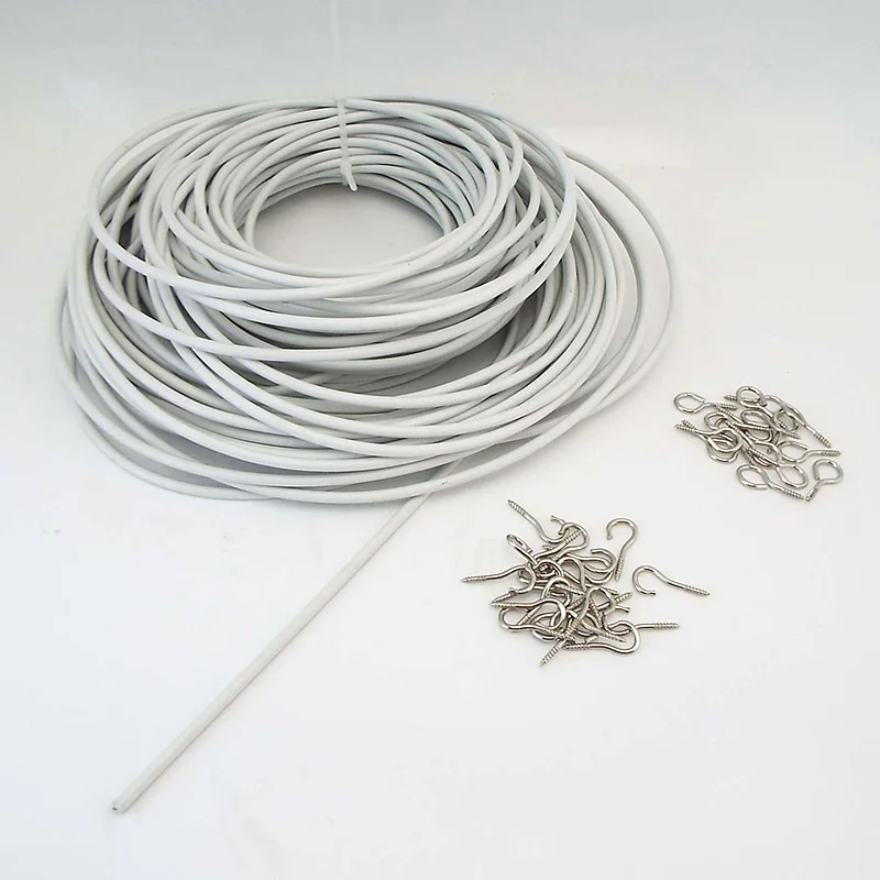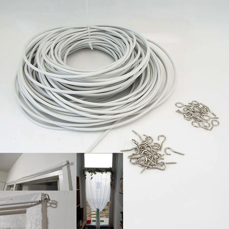 Cable de ventana de cortina de PVC de 0,5 m y 1M, Cable de pista de red, línea colgante de pared de ventanas blancas con ojos de ganchos para coches, caravanas, barcos